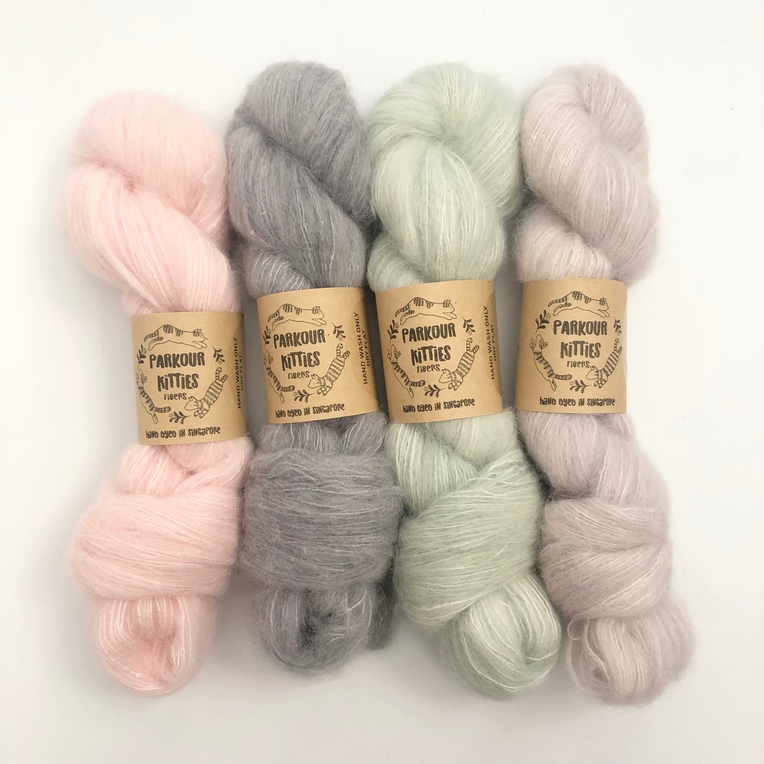 Fibre sourced from around the world, hand dyed in Singapore, Parkour Kitties...