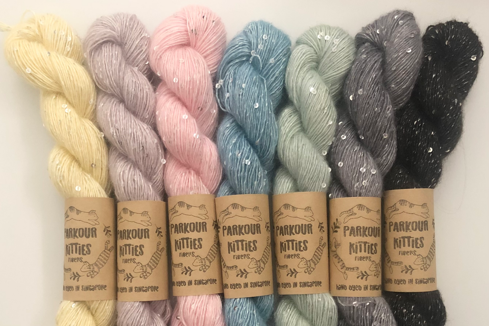Parkour Kitties Fibers is an independent hand dyed yarn studio based in Singapore, known for creating vibrant, hand-dyed yarns on natural fibers like wool and silk. The yarns are hand dyed in small batches. No two skeins are identical, that’s the beauty of hand dyed yarn.
